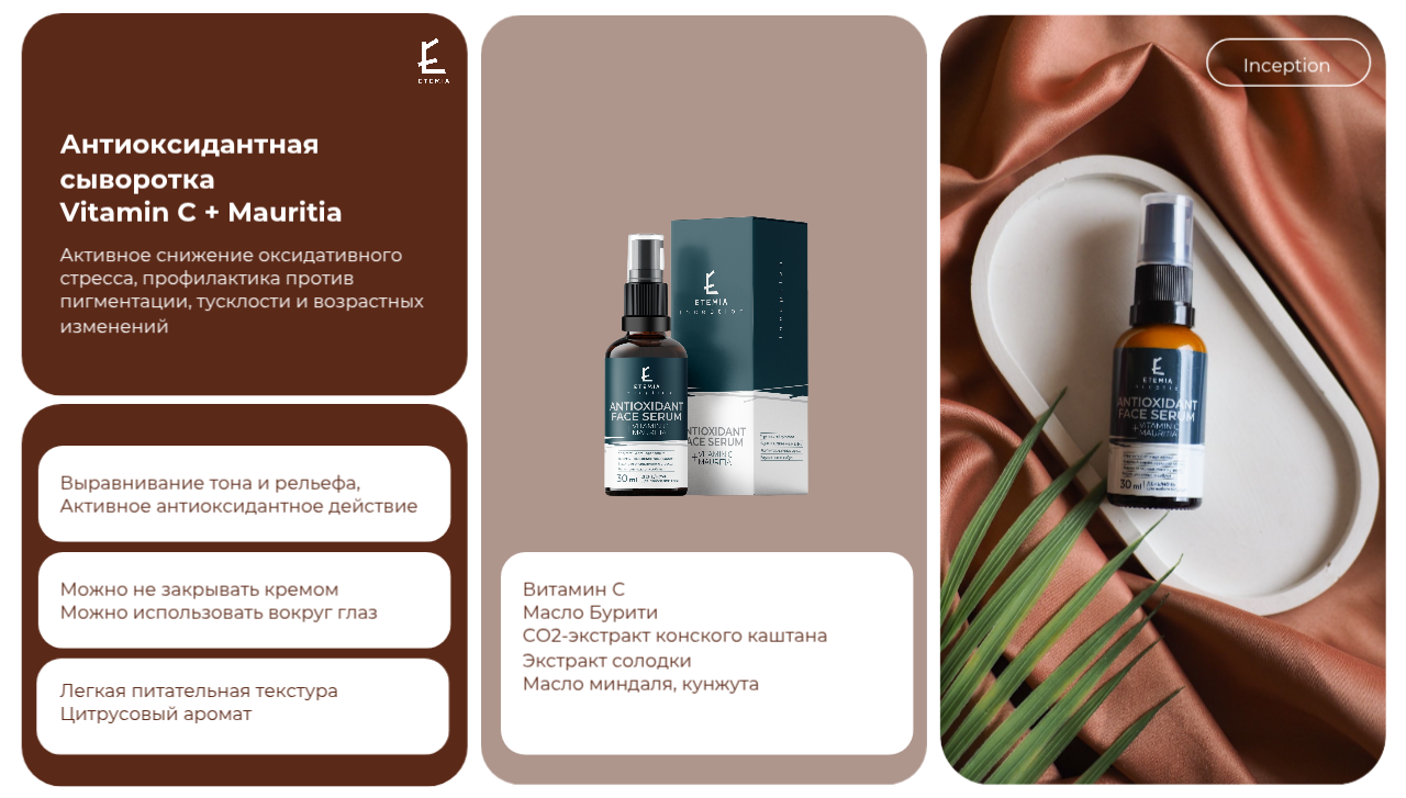 Конский каштан хорошо работает не только с отечностью, но и синячками усталости, тусклостью тона. Более мягкий вариант - водно-глицериновый экстракт. Более активная форма - CO2-экстракт.